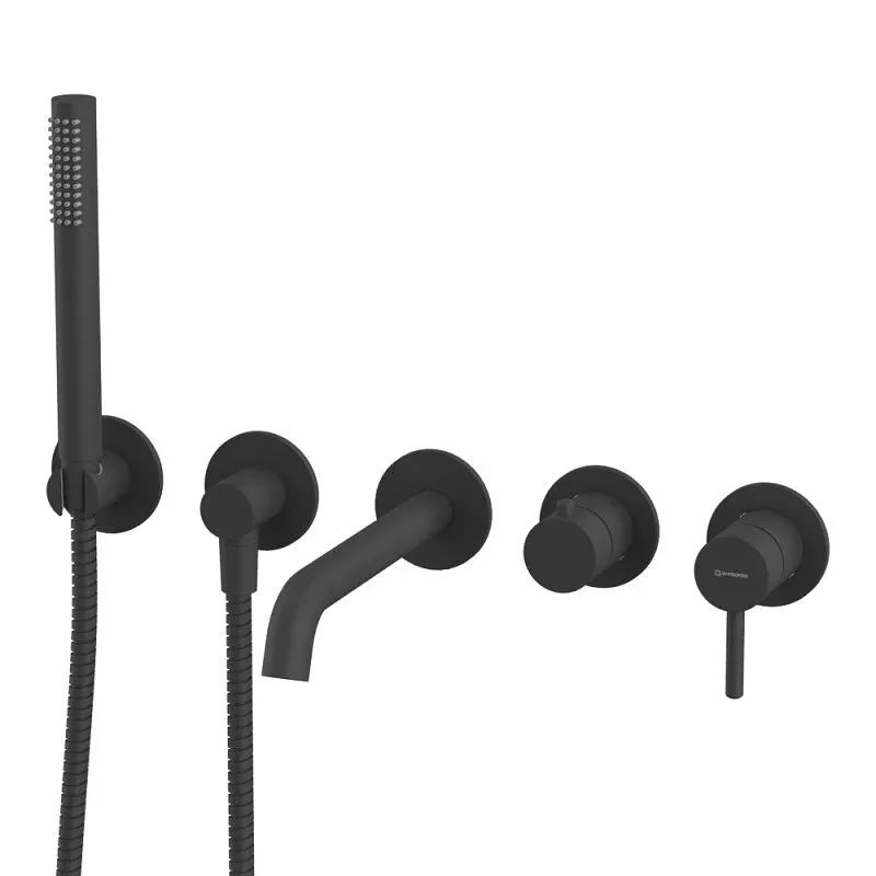 Смеситель Whitecross Y black YSET1240BL, для ванны и душа, с душевым гарнитуром, черный матовый