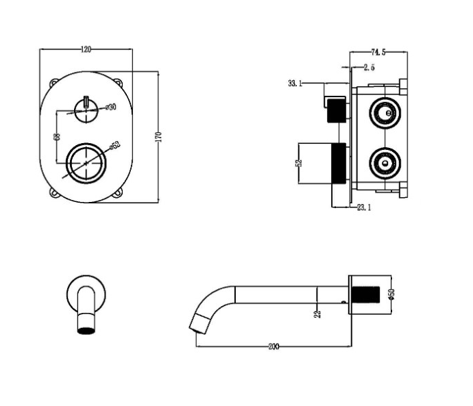 Смеситель встроенный Boheme + излив + держатель лейки + шланг TECH Matt Gold матовое золото купить