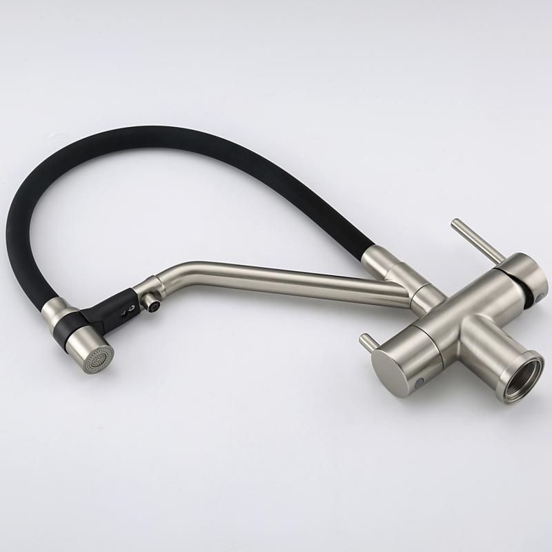 Смесители для кухни Gappo G4398-85 под фильтр с гибким изливом сатин/чёрный