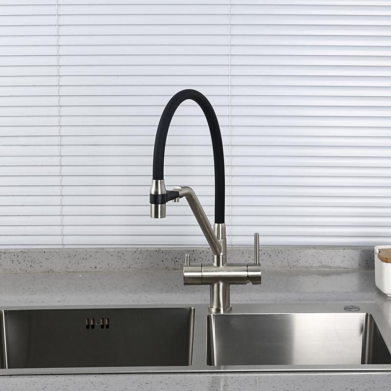 Смесители для кухни Gappo G4398-85 под фильтр с гибким изливом сатин/чёрный купить