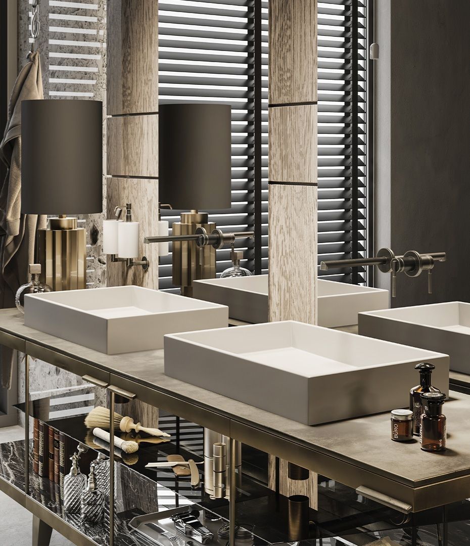 Стакан Gessi Ingranaggio можно удобно расположить на стене, экономя пространство на столешнице и при этом сохраняя все необходимые аксессуары под рукой. Его геометричные формы и черный металлический цвет делают его универсальным элементом, который гармонично вписывается в различные стили интерьера, от минималистичного до более сложного, с элементами индустриального дизайна.
