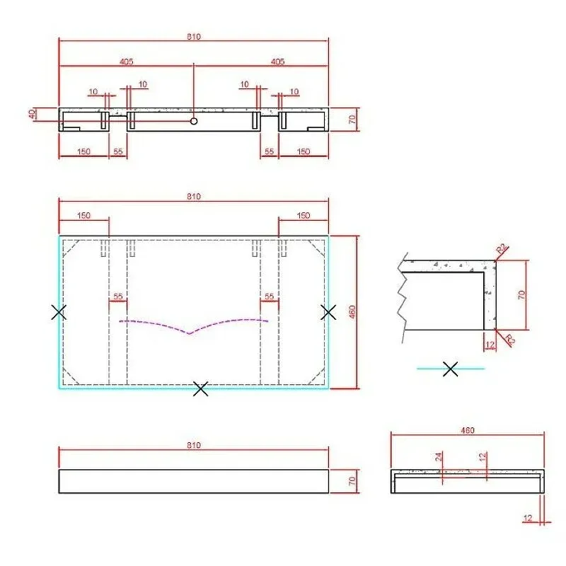 Столешницы и раковины по периметру имеют борт высотой 8см и скрытый крепеж. Подвесные тумбы и ArmadiArt выполнены в размерах 60см, 80см, 100см, 120см и 140см.