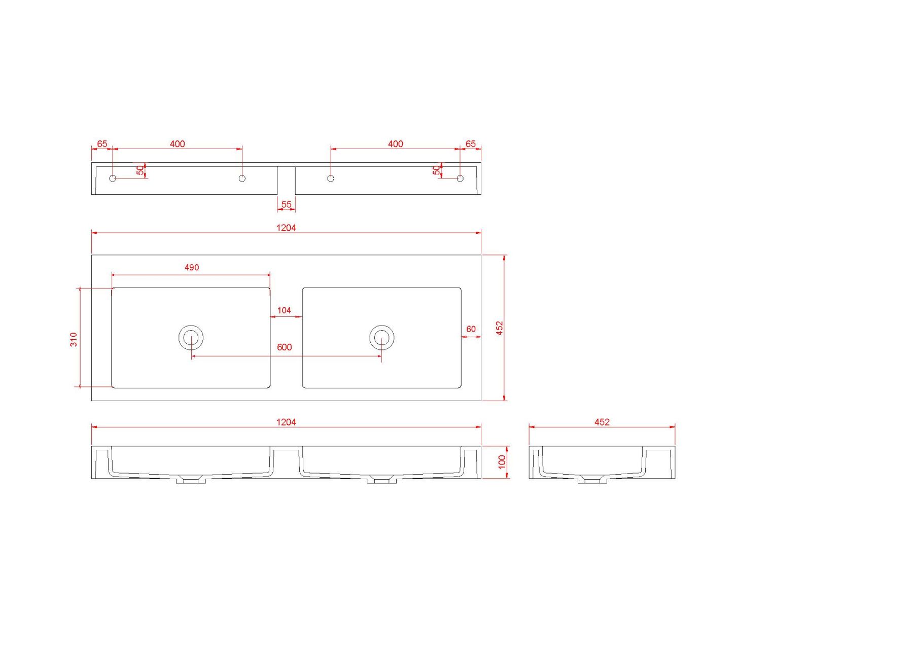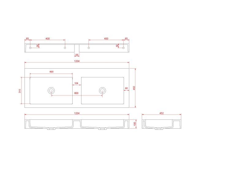 Столешница Armadi Art моноблок FLAT ST 120см (1204*452*100) двойной белый матовый