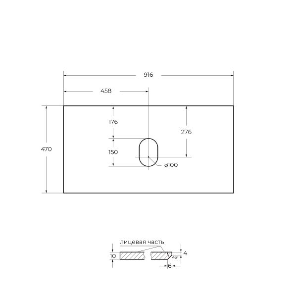 Столешница BelBagno из керамогранита без отверстия под смеситель 916x468 KEP-90-BO-W0 Bianco Opaco белый матовый