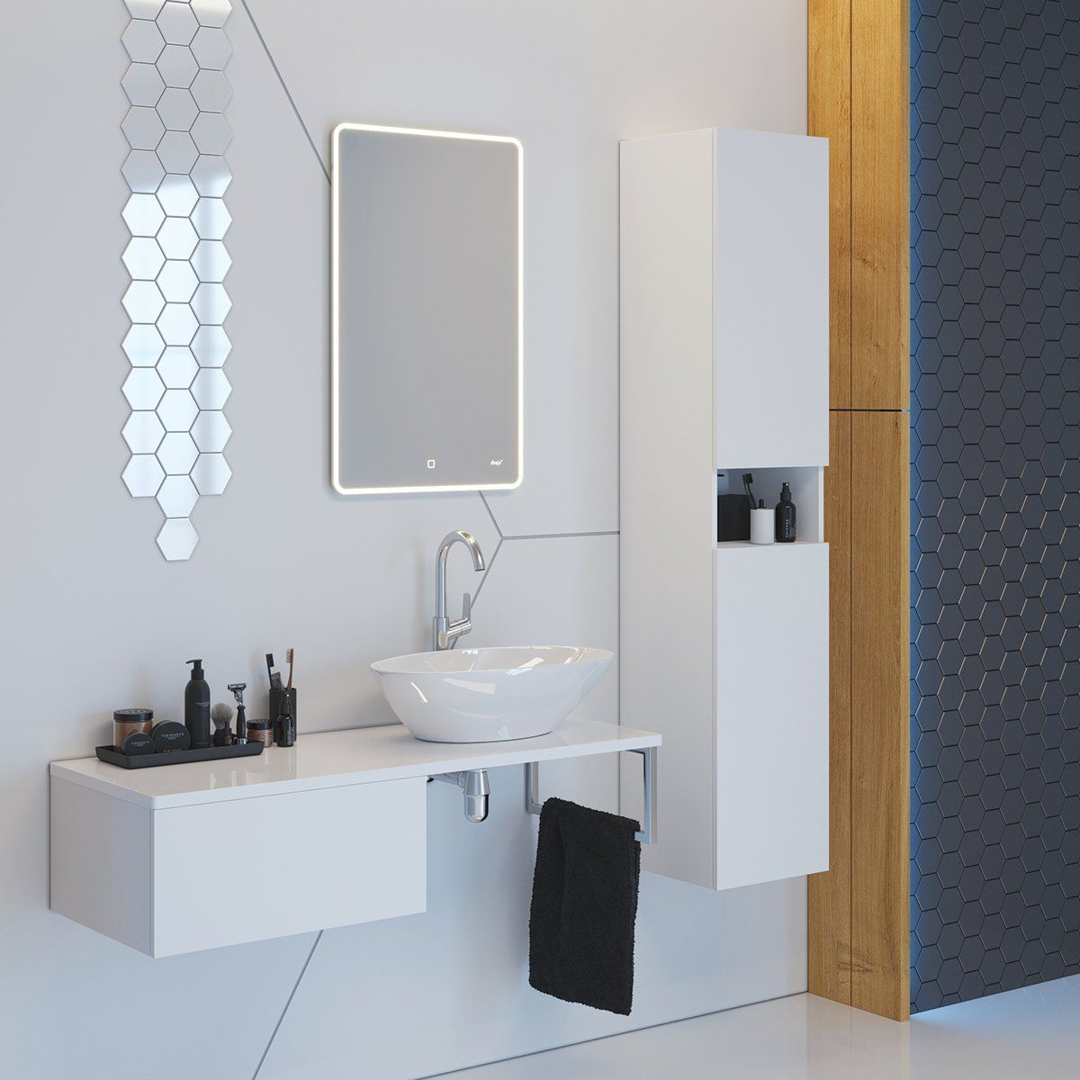 Столешница LINE, 120 см, стеклянная, с отверстиями для установки накладного умывальника и смесителя, белая