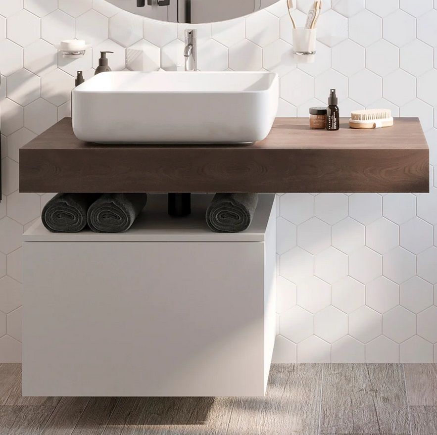 Столешница STWORKI Ольборг 100 дуб карпентер, без отверстий, с тумбой 60, с раковиной STWORKI Soul 1 белой купить