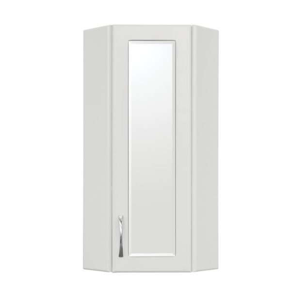 Подвесной шкаф угловой бренда "Style Line" Эко Стандарт 300*800 с зеркальной вставкой. Фурнитура - хром, эксклюзивный декор "Луино" - ламинация внутренней стороны изделия. Все материалы полностью влагостойкие