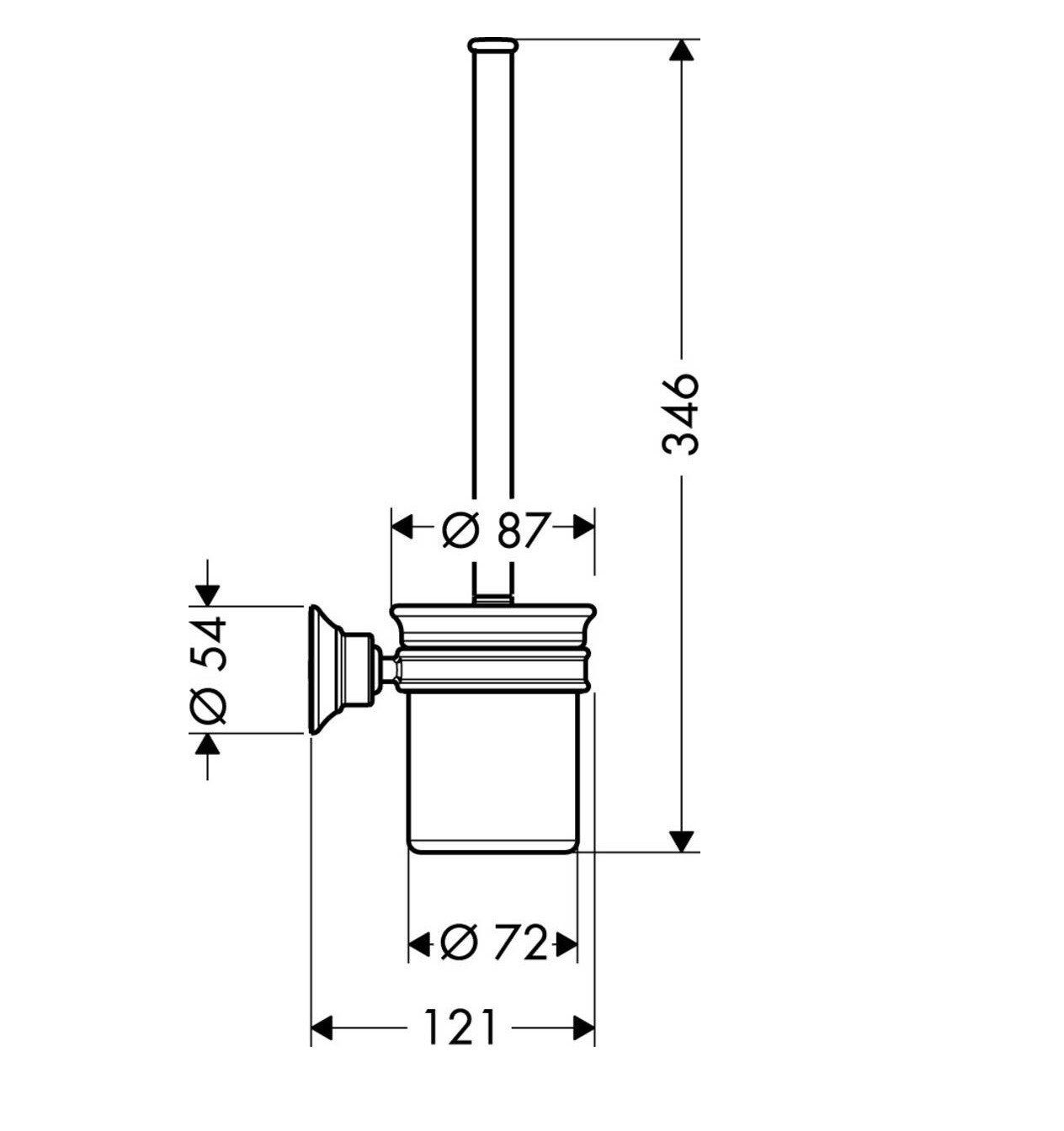 Axor Montreux 42035250 Туалетный ершик подвесной (золото шлифованное). Настенный монтаж, материал: металл/фарфор, со съемной вставкой, с монтажным материалом, скрытое крепление, дистанция сверления 35 мм, диаметр отверстия: 6 мм. Гарантия 5 лет. Германия.