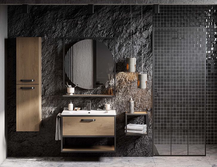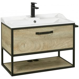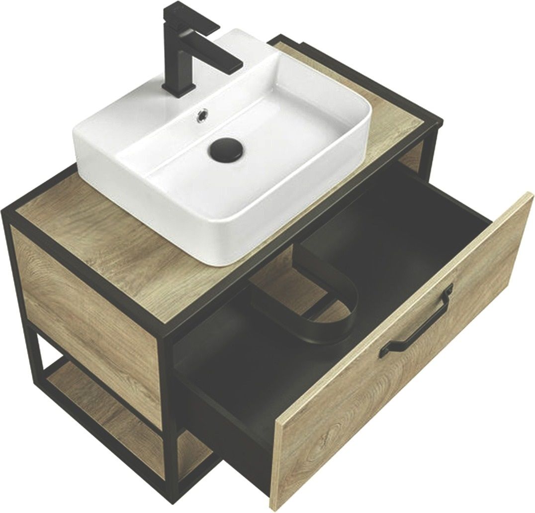 - Тумба Лофт Фабрик 80 в цвете дуб эндгрейн – это сочетание натурального древесного декора и благородства металла