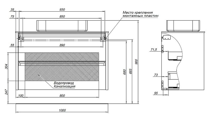 Габариты корпуса тумбы (ШхВхГ): 1000х620х460 мм.