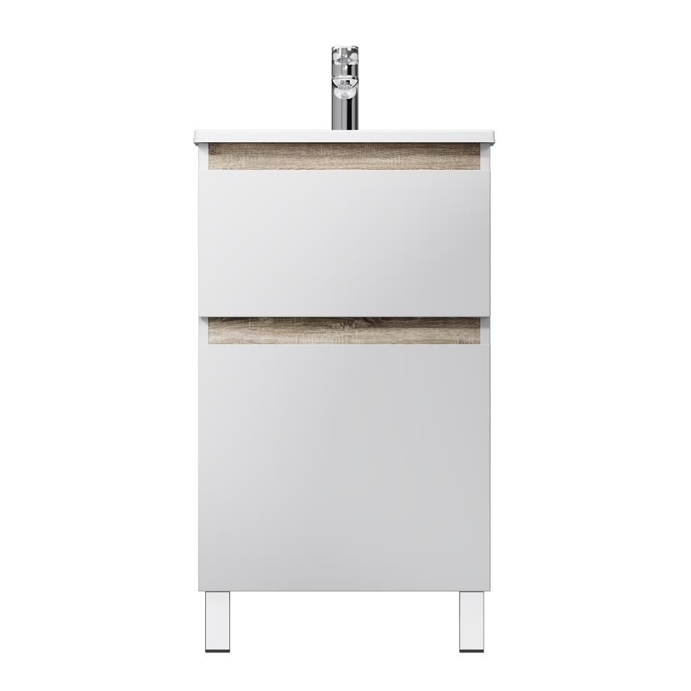 Напольная тумба бренда AM.PM коллекции X-Joy отличается эстетичным сочетанием цветов и фактур от дизайн-агентства Danelon Meroni: белые глянцевые фасады дополнены отделкой под светлое дерево. Функциональный органайзер в первом ящике позволит хранить необходимые косметические средства под рукой и в полном порядке. Внутреннее покрытие каждого ящика выполнено в современном цвете "антрацит" и имеет противоскользящее покрытие. Материал изделия - МДФ, ЛДСП. Размер тумбы (Ш/Г/В): 490x450x850. Цвет тумбы - белый глянец.