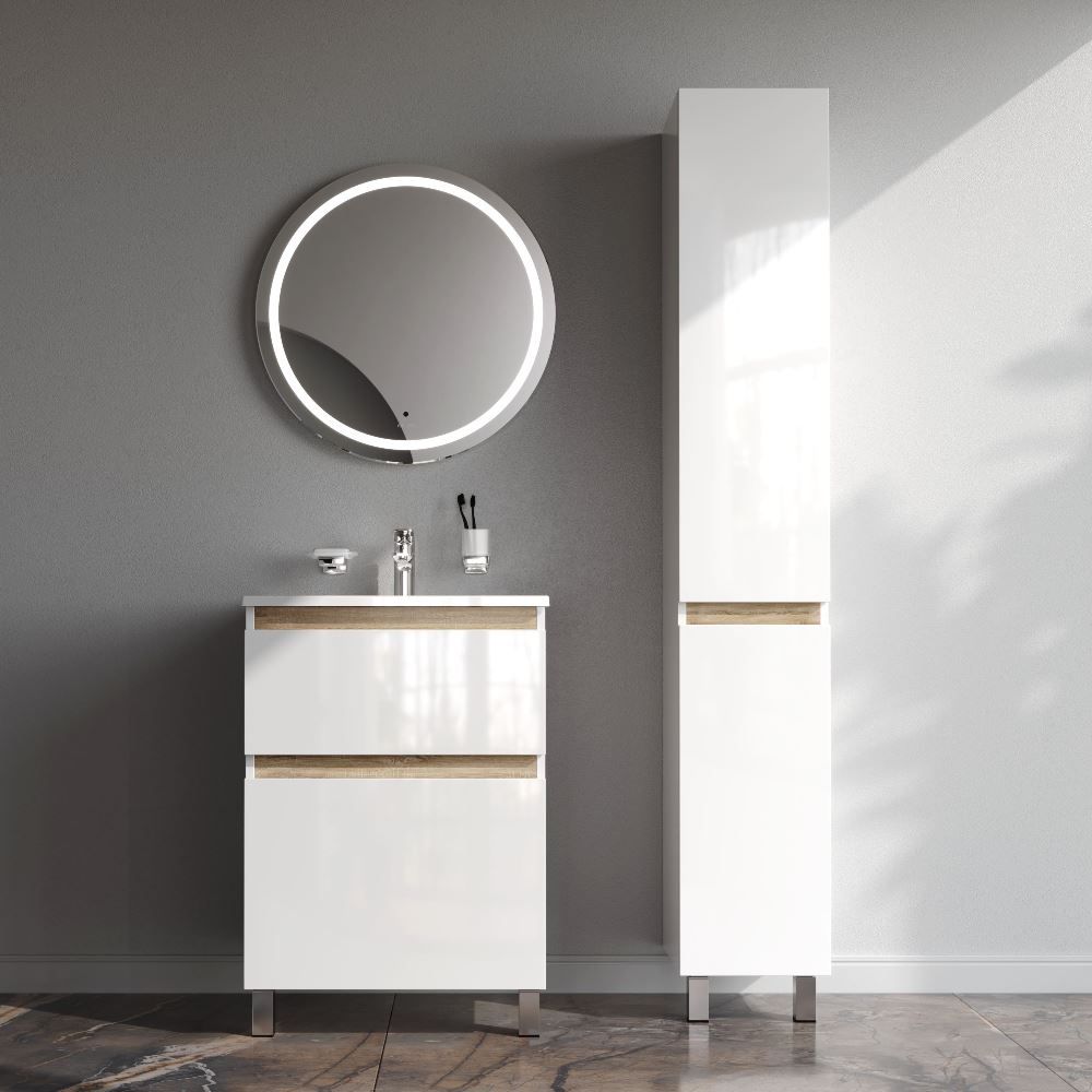 Напольная тумба бренда AM.PM коллекции X-Joy отличается эстетичным сочетанием цветов и фактур от дизайн-агентства Danelon Meroni: белые глянцевые фасады дополнены отделкой под светлое дерево. Функциональный органайзер в первом ящике позволит хранить необходимые косметические средства под рукой и в полном порядке. Внутреннее покрытие каждого ящика выполнено в современном цвете "антрацит" и имеет противоскользящее покрытие. Материал изделия - МДФ, ЛДСП. Размер тумбы (Ш/Г/В): 590x450x850. Цвет тумбы - белый глянец.