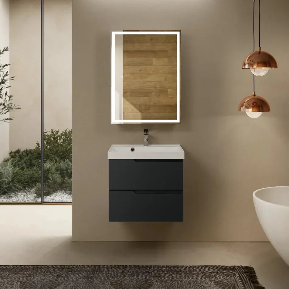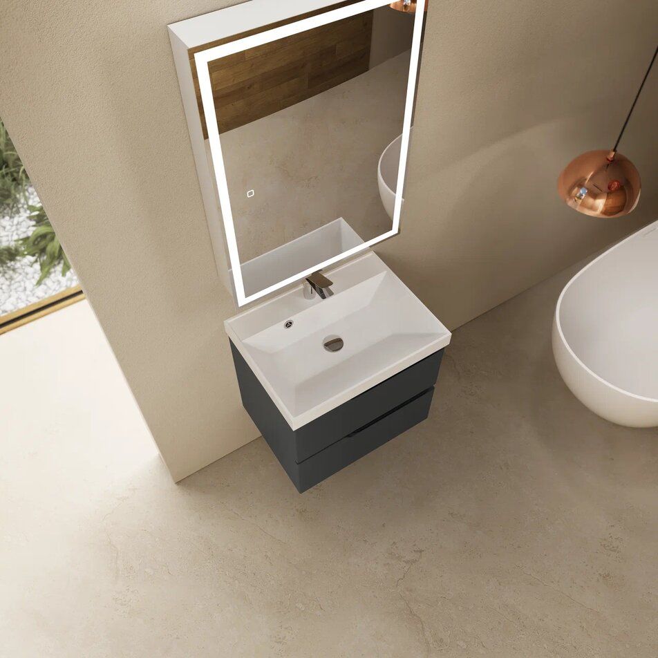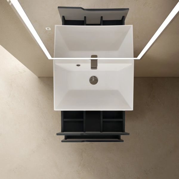 Тумба под раковину подвесная 600*450 мм (антрацит матовый). Корпус и фасад тумбы выполненные из качественного МДФ имеют полимерное покрытие, что обеспечивает долговечность и защиту от влаги. Два вместительных ящика с системой плавного закрывания. Для раковин 1017000600001 или 4627173210164 или 4670142930938 - в комплект раковина не входит.
