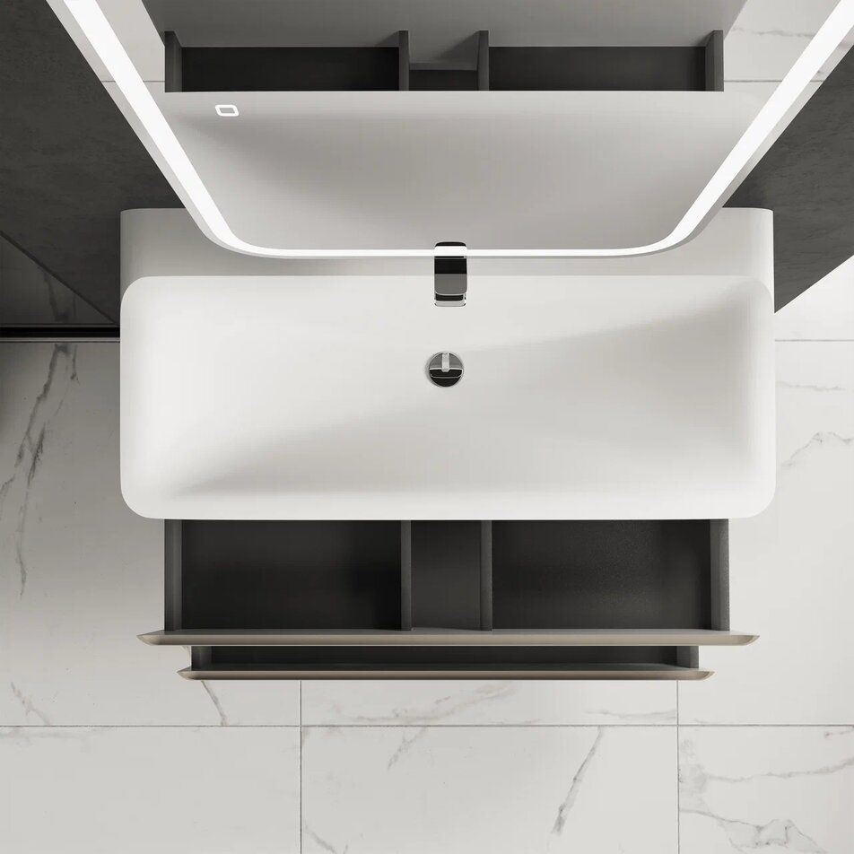 Тумба под раковину подвесная 1000*450 мм (бежевый глянцевый). Корпус и фасад тумбы выполненные из качественного МДФ имеют полимерное покрытие, что обеспечивает долговечность и защиту от влаги. Два вместительных ящика с системой плавного закрывания. Тумба поставляется в собранном виде. Для раковин RON10146 или Solo 08.100/W/RL - в комплект раковина не входит.