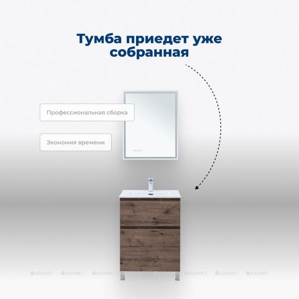 В тумбах за нижним ящиком предусмотрено место для подводки коммуникаций снизу. Тумбы комплектуются керамическими раковинами Flat 50/60/70/80/100 (Aquanet) или Flash 50/60/70/80/100 (Aquanet), что позволяет подобрать оптимальное решение для любой ванной комнаты.