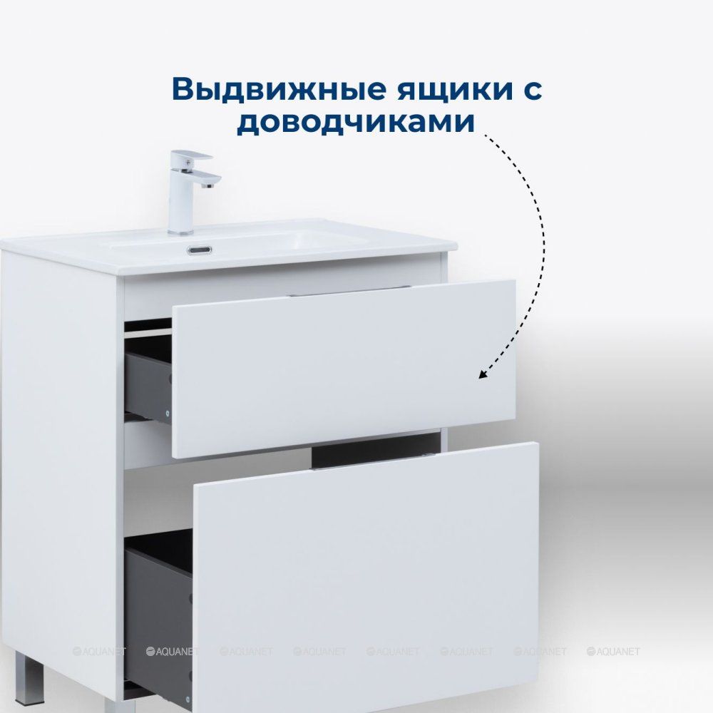 Тумбы комплектуются керамическими раковинами Flat 50/60/70/80/100 (Aquanet) или Flash 50/60/70/80/100 (Aquanet).