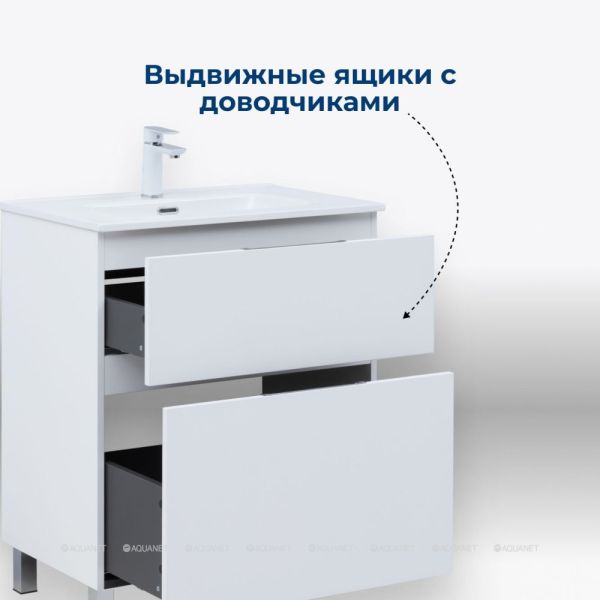 Тумба под раковину Aquanet Алвита New 80 напольная, белый матовый. Внутренние детали изготовлены... Подробнее