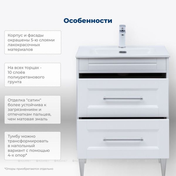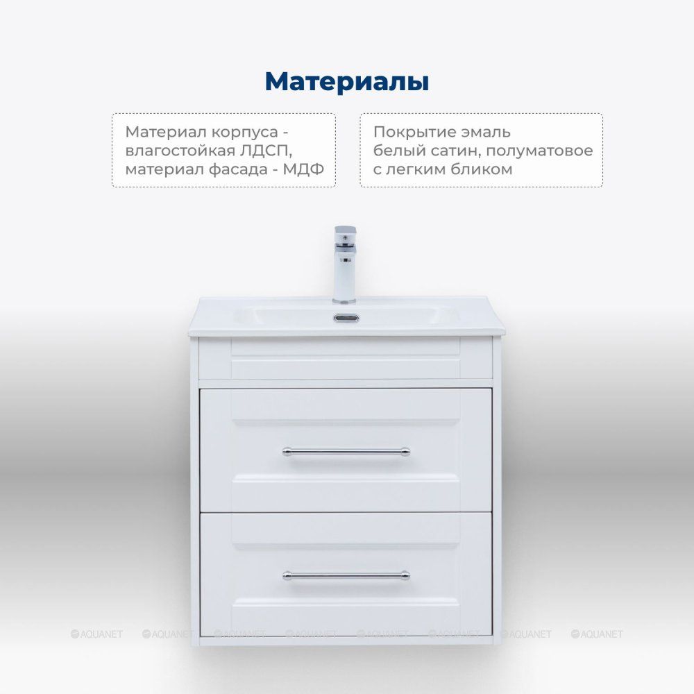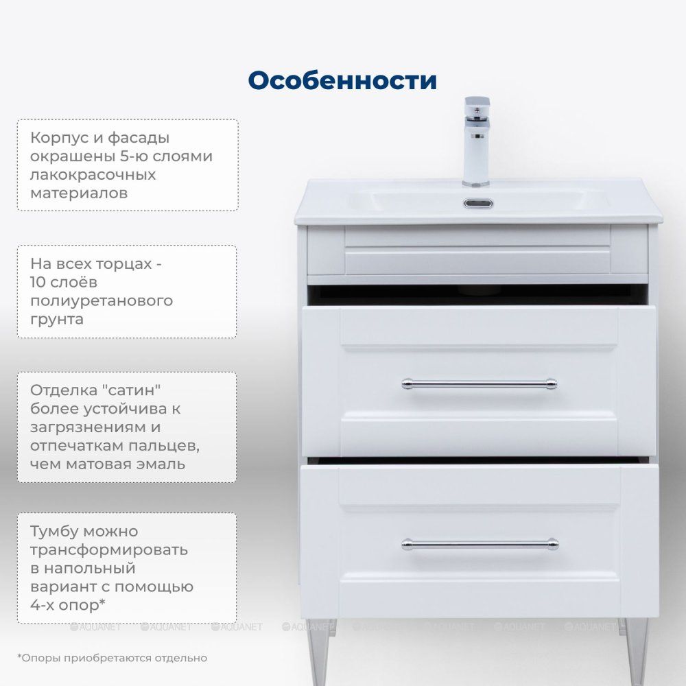 Тумба под раковину Aquanet Бостон new 60 белый сатин Стильная и функциональная тумба под рако... Подробнее