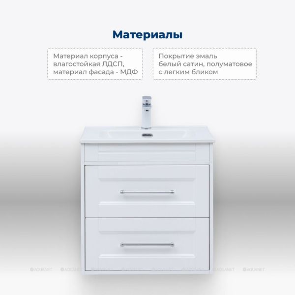 Тумба под раковину Aquanet Бостон new 60 белый сатин