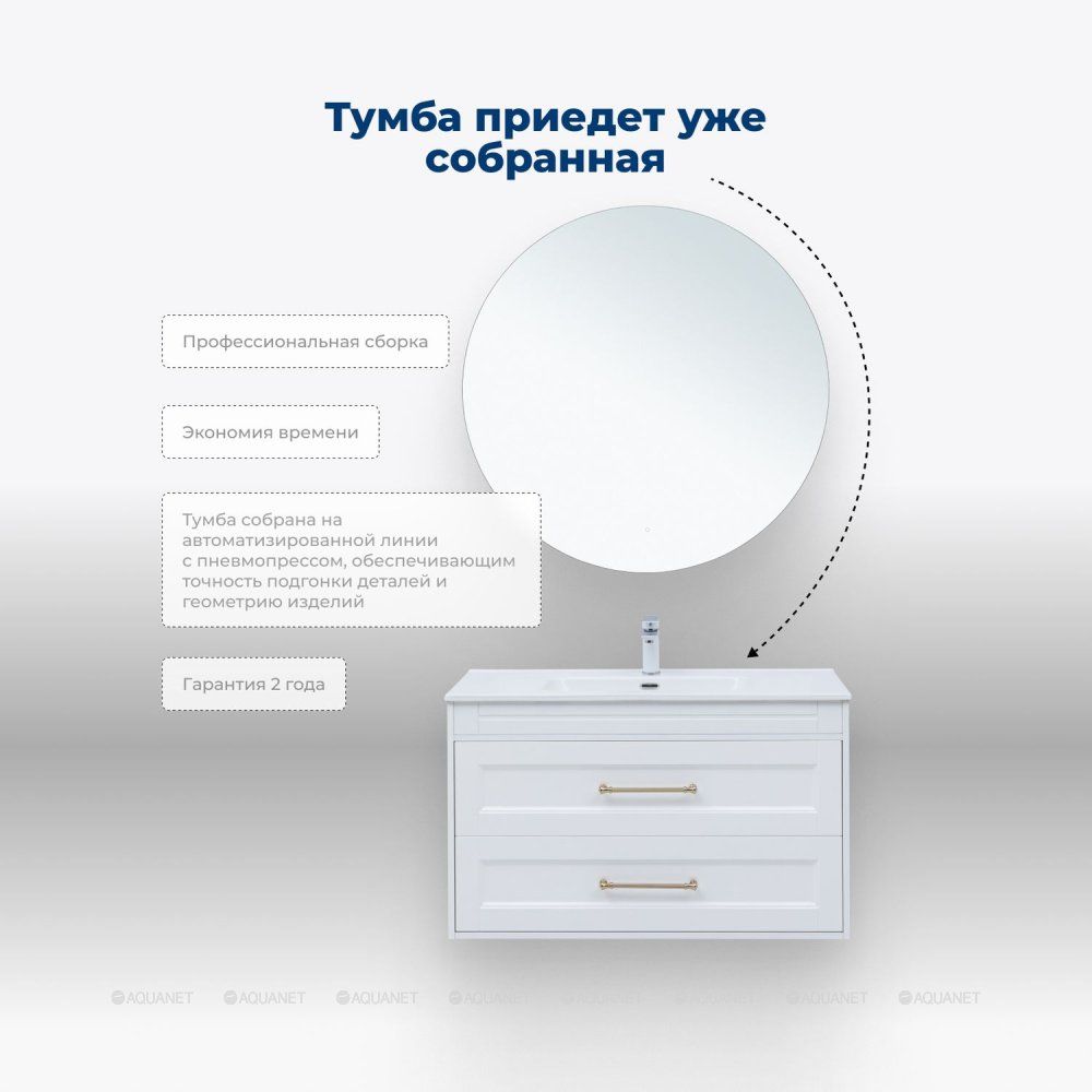 Тумба под раковину Aquanet Бостон new 100 белый сатин