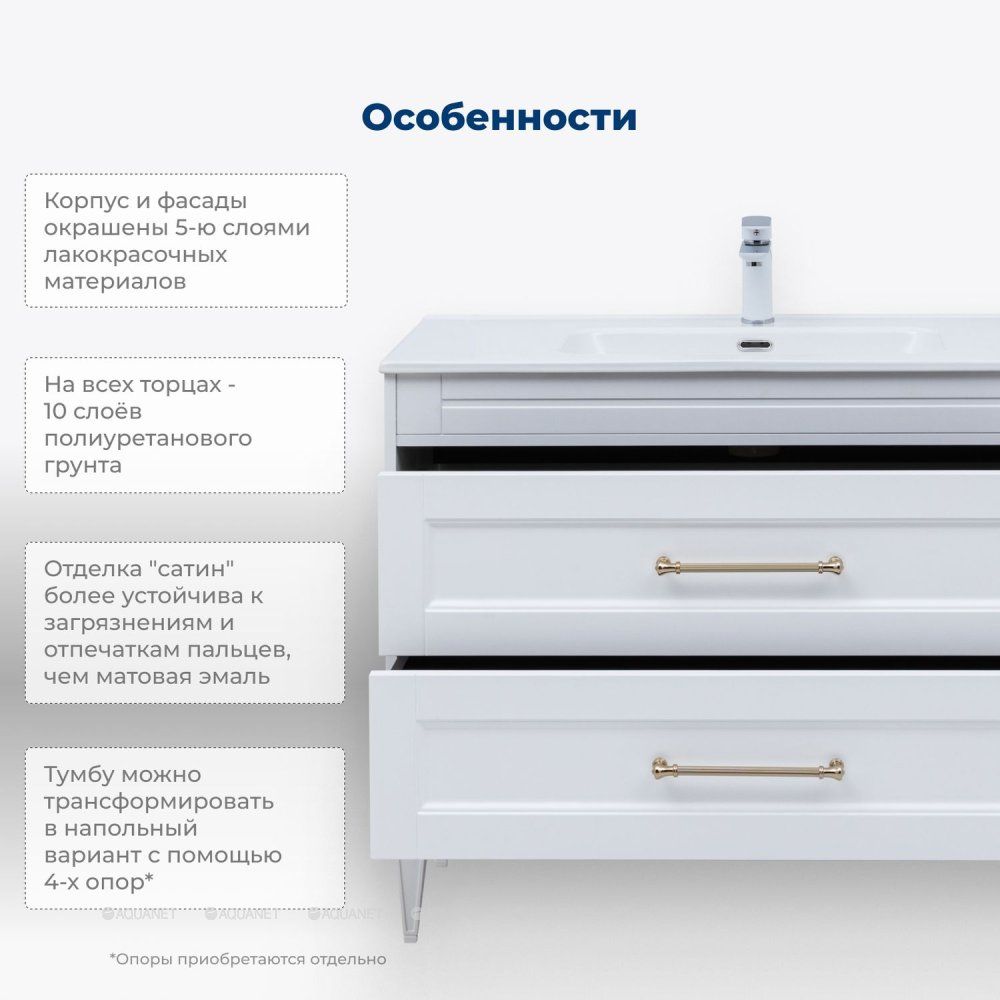 Тумба под раковину Aquanet Бостон New 347183 100 см белый сатин