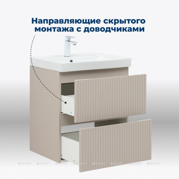 Тумба под раковину Aquanet Джейн (Flat) 60 бежевый сочетает в себе функциональность, прочность и современный дизайн. Подходит для помещений с повышенной влажностью.