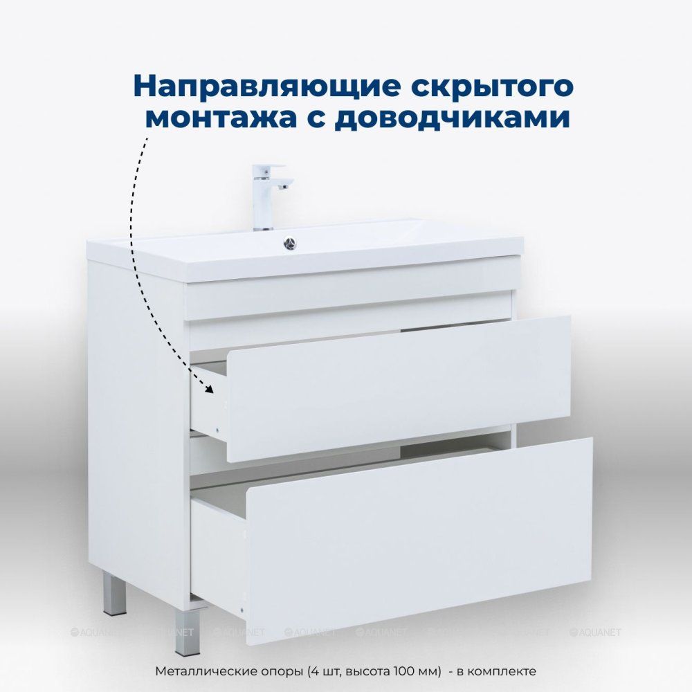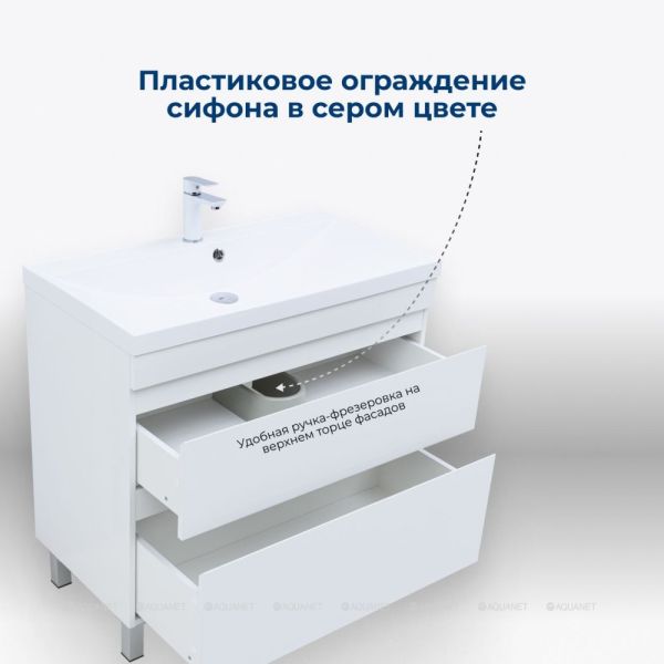 Тумба под раковину Aquanet Нота New 90 белый глянец Элегантное и практичное решение для ван... Подробнее