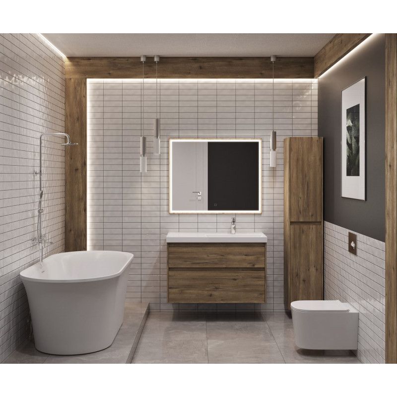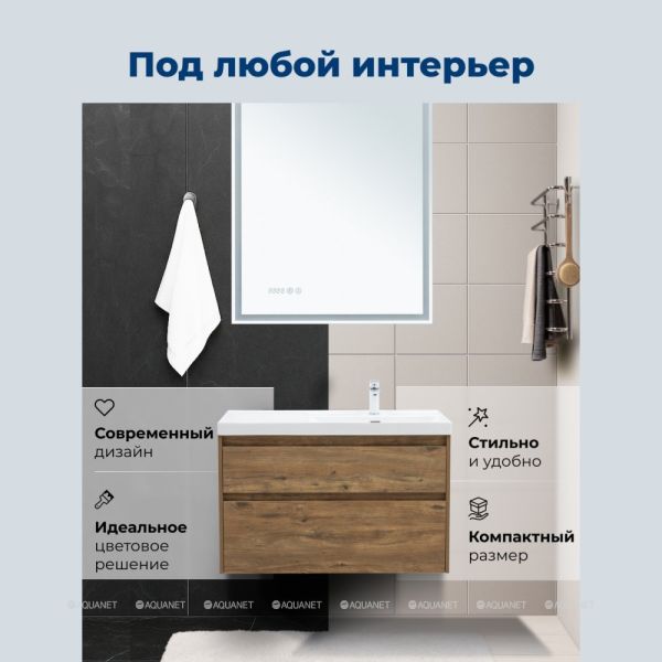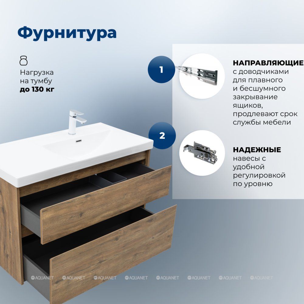Стильная и практичная тумба для ванной комнаты с продуманной конструкцией. Модель Aquanet Nova Lite 2.0 100 выполнена в цвете дуб рустикальный – матовое покрытие имитирует фактуру натурального дерева и не оставляет отпечатков пальцев.