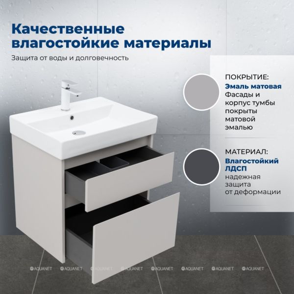 Компактная и стильная тумба под раковину Aquanet Nova Lite 2.0 60 в бежевом цвете с матовым по... Подробнее