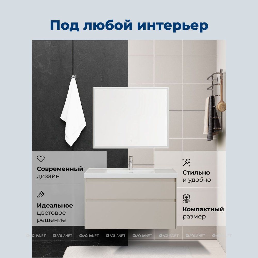 Тумба под раковину Aquanet Nova Lite 2.0 110 в бежевом цвете с матовым покрытием станет практичным дополнением ванной комнаты. Ее лаконичный дизайн сочетается с разными стилями интерьера — от минимализма до классики.