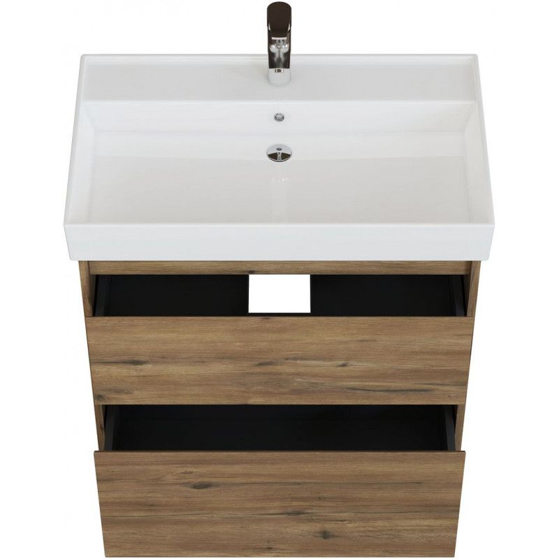 Стильная и практичная тумба для ванной комнаты с продуманной конструкцией. Модель Aquanet Nova Lite 2.0 60 выполнена в цвете дуб рустикальный – матовое покрытие имитирует фактуру натурального дерева и не оставляет отпечатков пальцев.