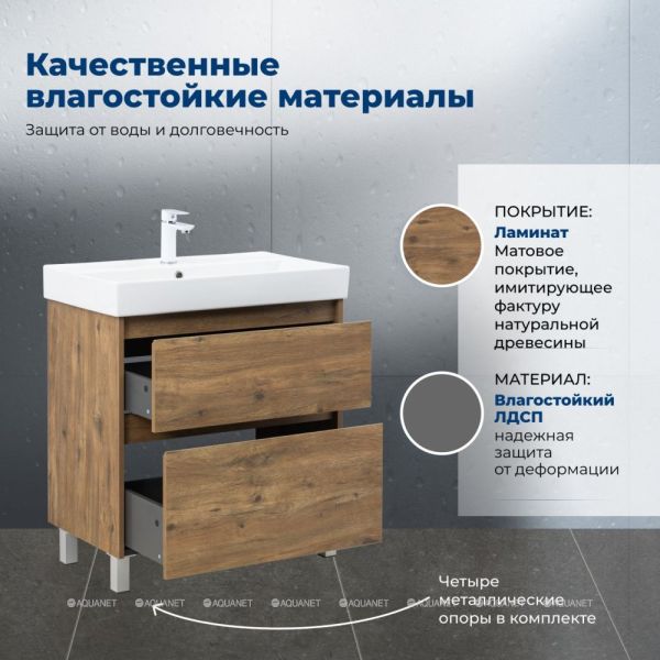 Тумба под раковину Aquanet Nova Lite 2.0 75 напольная, дуб рустикальный Стильная и практи... Подробнее