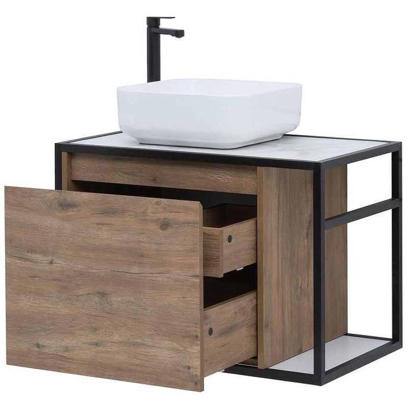 Тумба под раковину Aquanet Nova Lite Loft 261658 75L дуб рустикальный представляет интригующий дизайн в стиле лофт. Разнообразие креативных идей, воплощенных в деталях тумбы, сделали ее востребованной ценителями сдержанного авангарда. Этот важный элемент мебели для ванной подготовлен к использованию в условиях повышенной влажности. Металл, влагостойкий ЛДС - материал, из которого выполнен корпус изделия, фасад – из влагостойкого ЛДСП. Обратите внимание, что двери выдвижные. Система хранения удобная: с ящиками.