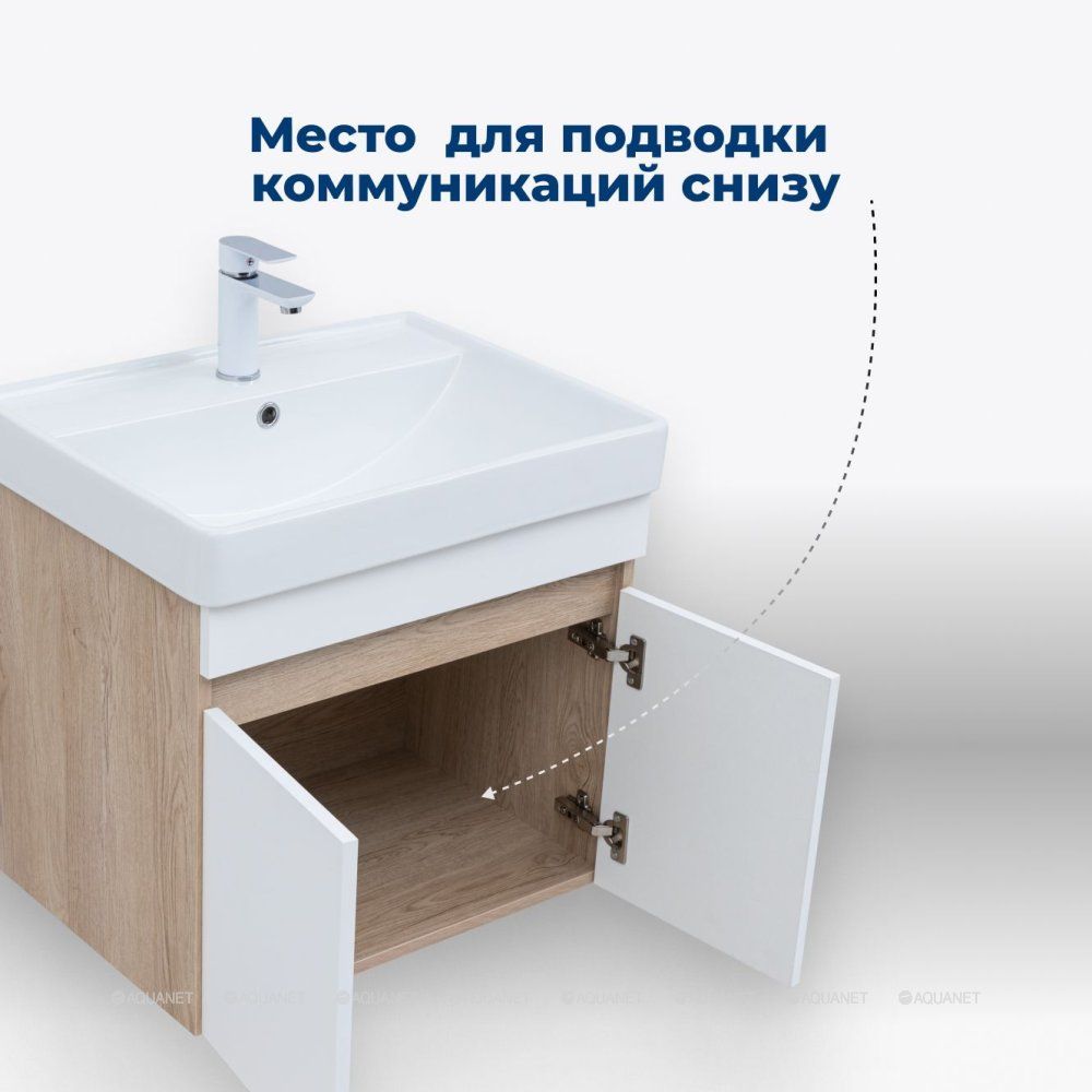 Тумба Aquanet Оптима 80 продумана до мелочей. В ней предусмотрено удобное место для подводки коммуникаций снизу, что облегчает установку и подключение сантехнического оборудования.