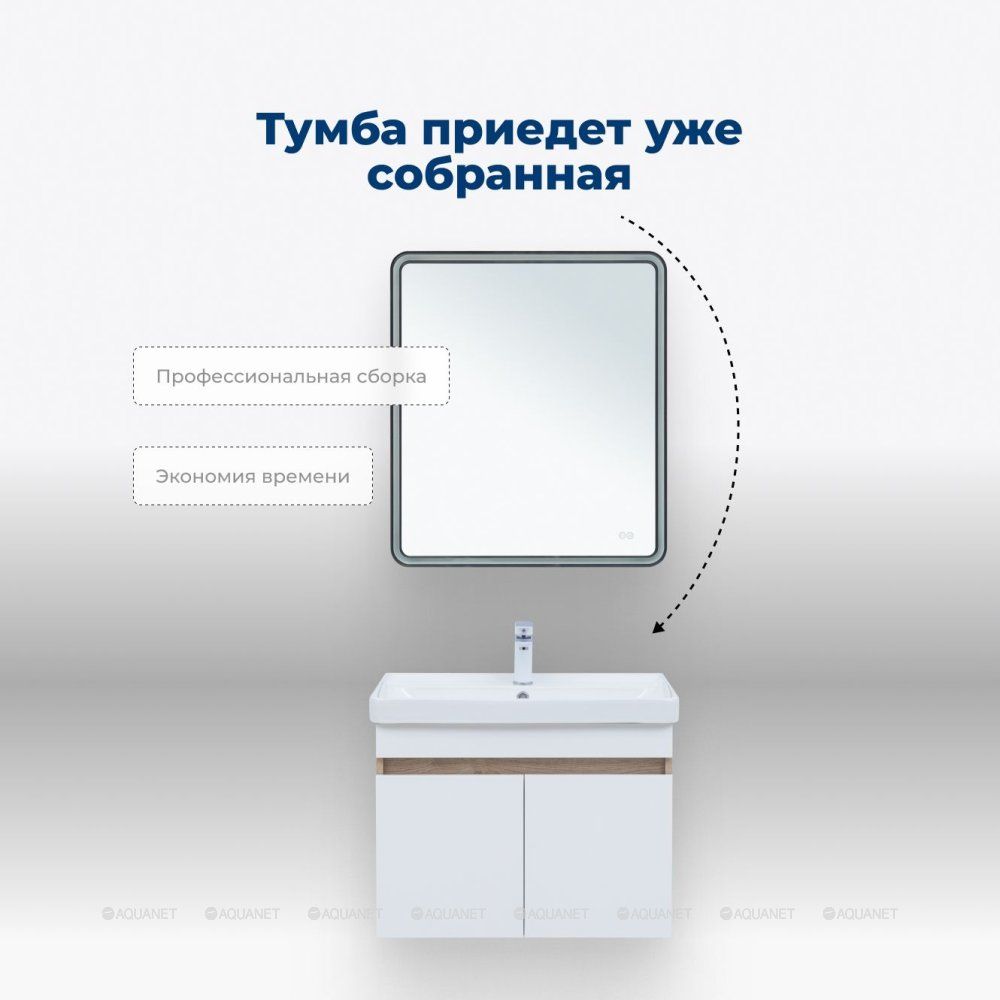 Тумба под раковину Aquanet Оптима 80 дуб светлый/белый сатин – это элегантное решение... Подробнее