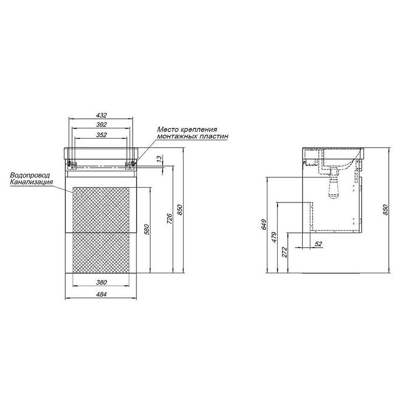 Тумба Aquanet Оптима 50 продумана до мелочей. В ней предусмотрено удобное место для подводки коммуникаций снизу, что облегчает установку и подключение сантехнического оборудования.