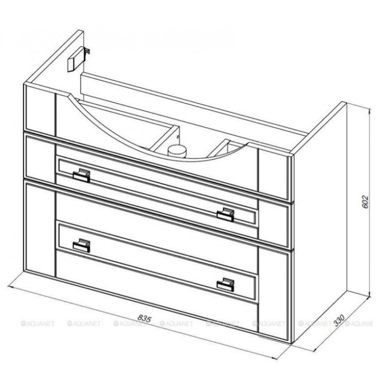 Механизм доводчика позволяет дверцам закрываться плавно и не хлопать. Раковина Aquanet Yatao 85 YB-1085 сделана из керамики в классическом стиле. По периметру расположен бортик, не позволяющий мыльнице или стакану с щеткой и пастой падать на пол или в ванную. Габариты — 850х330х602 мм.