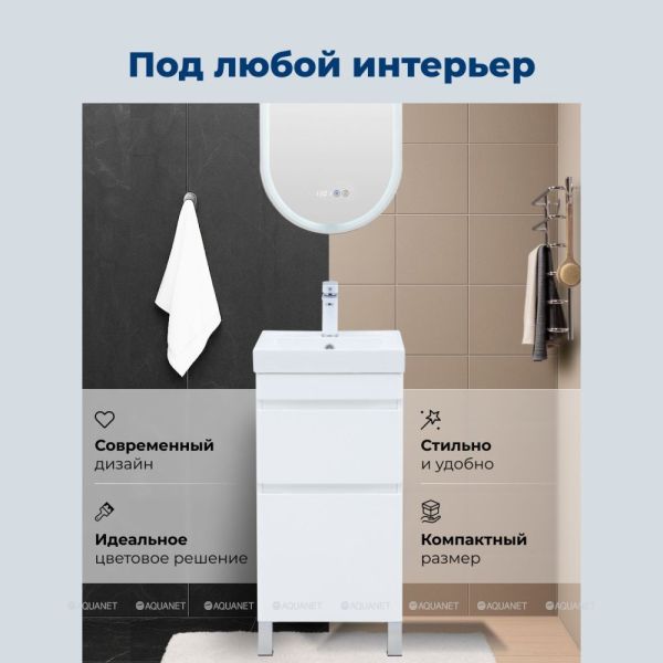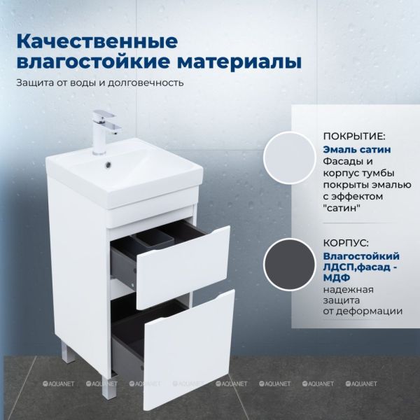 Тумба под раковину Aquanet Слим 40 напольная, белый сатин – компактное и функциональное ре... Подробнее