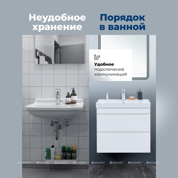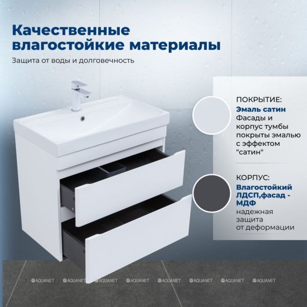 Тумба под раковину Aquanet Слим 346049 80 см белый сатин