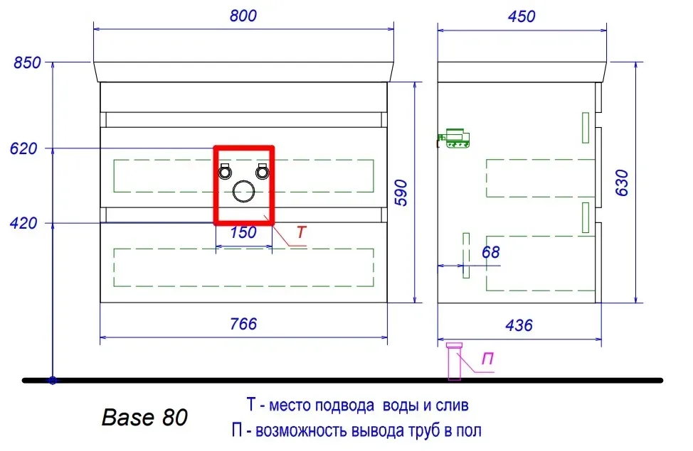 Base – это мебель для ванной комнаты, представленная в двух цветовых решениях: «дуб золотой/белый» и «бетон/белый». Коллекция состоит из подвесных тумб, оснащённых двумя вместительными выдвижными ящиками без ручек, открывающимися за край фасада. Умывальник приобретается дополнительно.