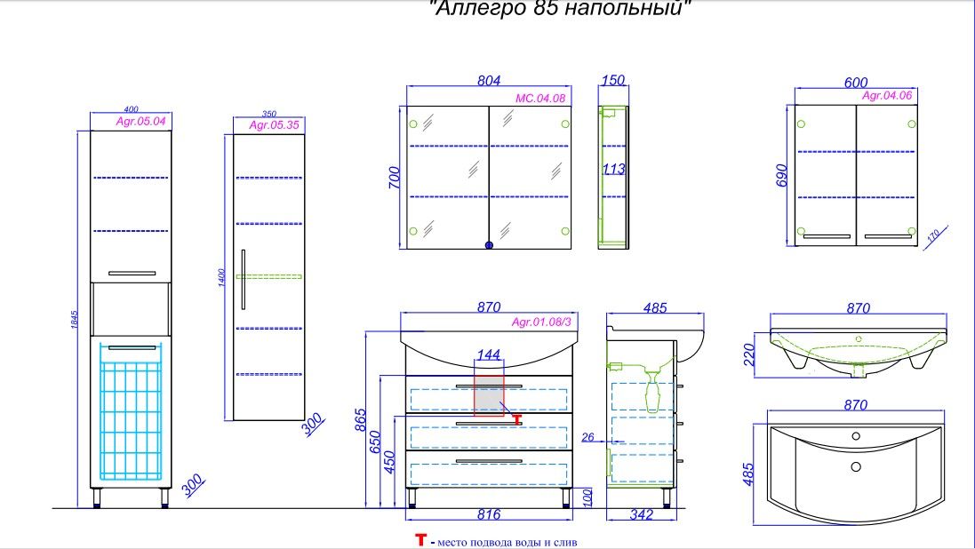Тумба под раковину Aqwella Аллегро 85 Agr.01.08/3