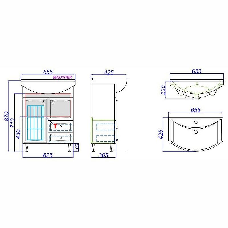 Тумба под раковину Aqwella Барселона-Люкс 65 Ba-L.01.06 (нов BA0106K)