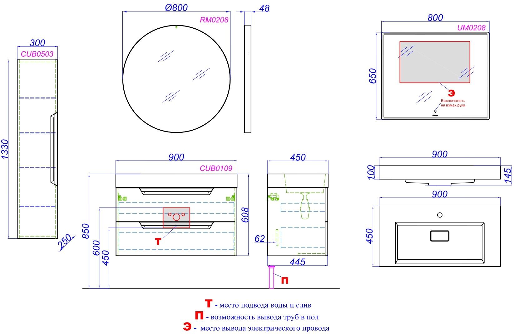 Тумба под раковину Aqwella Cube 90см серый CUB0109GR купить