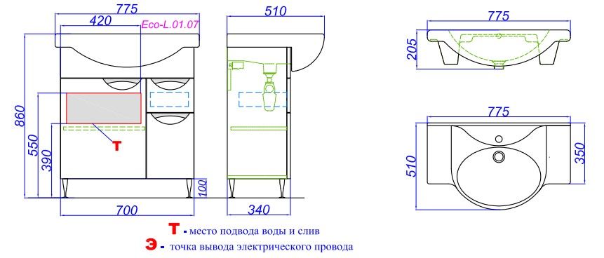 Тумба под раковину Aqwella ЭкоЛайн 70 Eco-L.01.07 (нов ECOL0107) купить