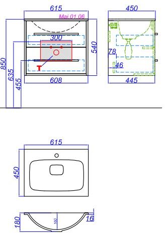 Ширина 61смВысота 53смГлубина 45смAqwella - это мебель для ванной премиум-класса.