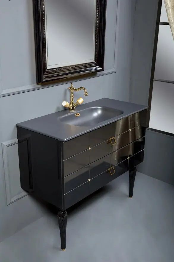 Тумба под раковину Armadi Art Vallessi Avangarde Piazza 80см чёрный/золото 841-080-BG купить
