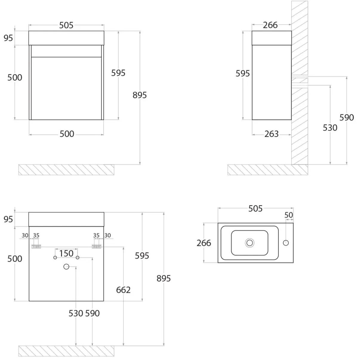 FAMILY-M База под раковину подвесная с одной распашной дверцей, Bourbon Oak, 500x270x500, Family-M-500-1D-SO-BO
