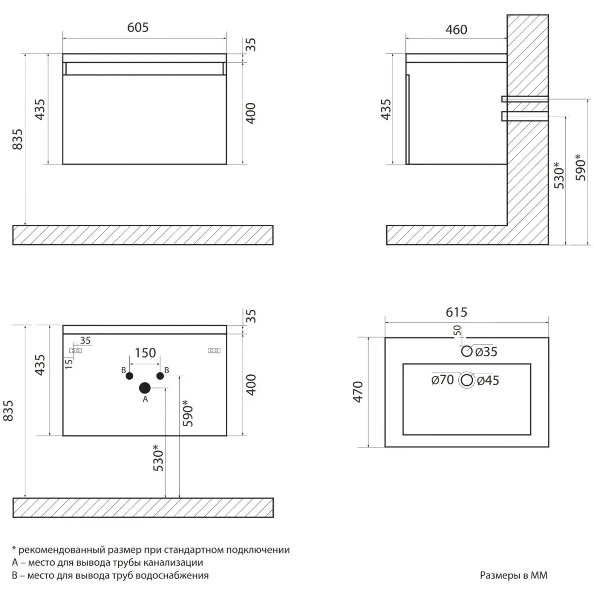 Тумба под раковину ArtMax Latina AM-Latina-600-1C-SO-BM 60 см белый матовый купить