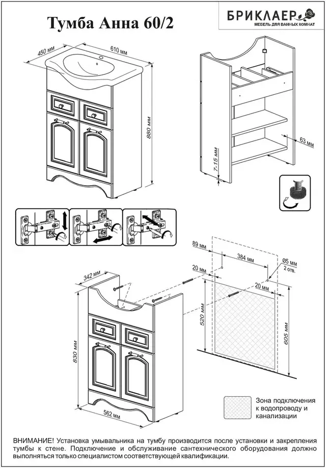 Тумба под раковину Бриклаер Анна 4627125412226 60 см белый купить