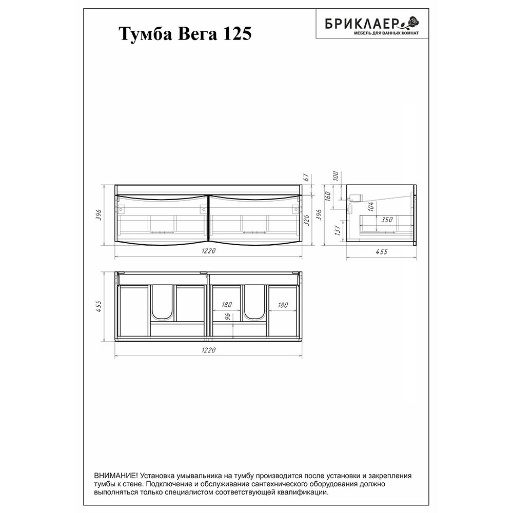 Тумба под раковину Бриклаер Вега 4627125414084 125 см белый купить